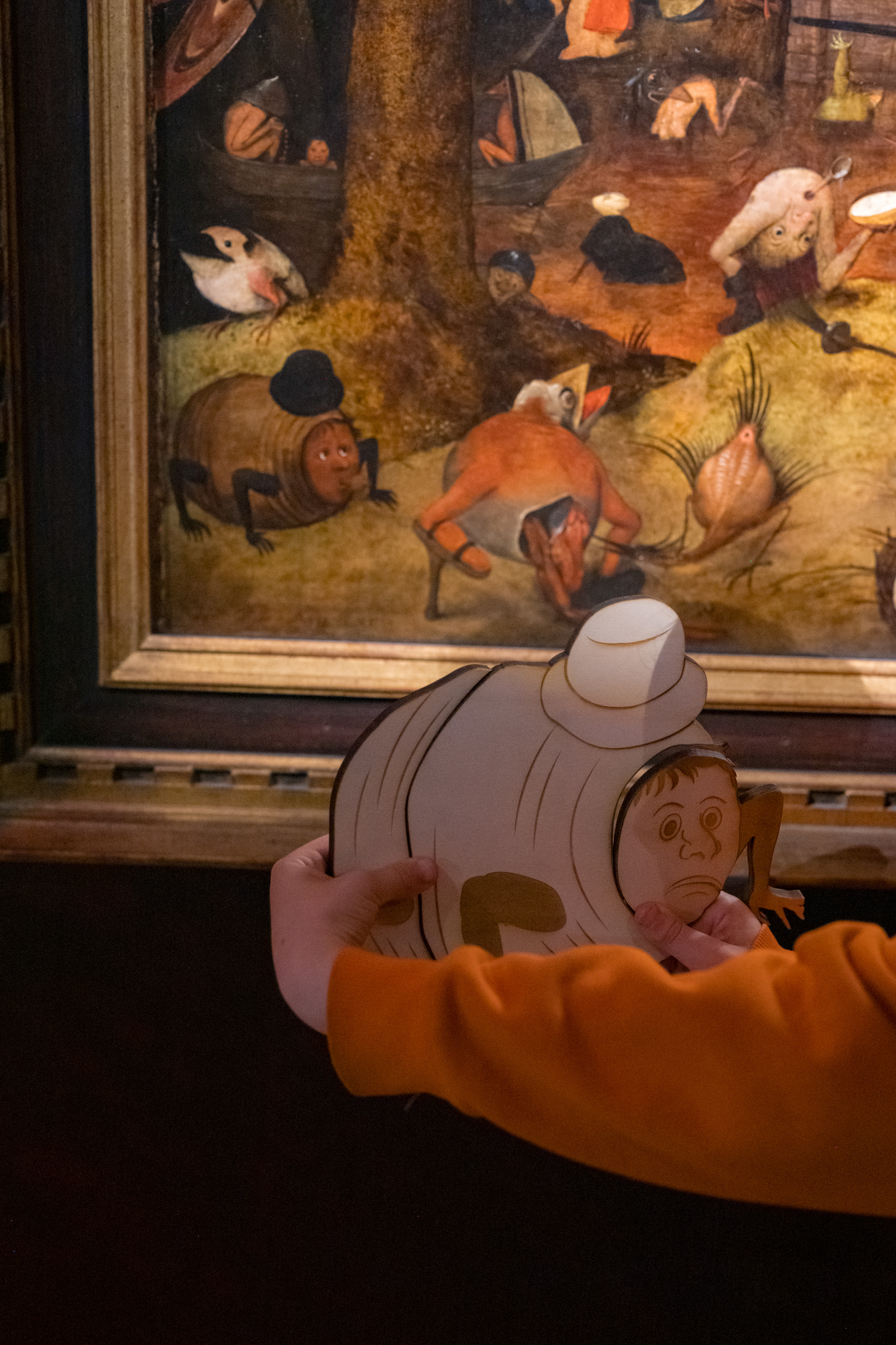 Een van de hoogtepunten van de zoektocht is natuurlijk "Dulle Griet". Mastiek wilde ervoor zorgen dat families de tijd nemen om dit meesterwerk van Bruegel echt te ontdekken. Daarom ontwierpen we een houten puzzel, gebaseerd op de bizarre monsters die in het schilderij te zien zijn.